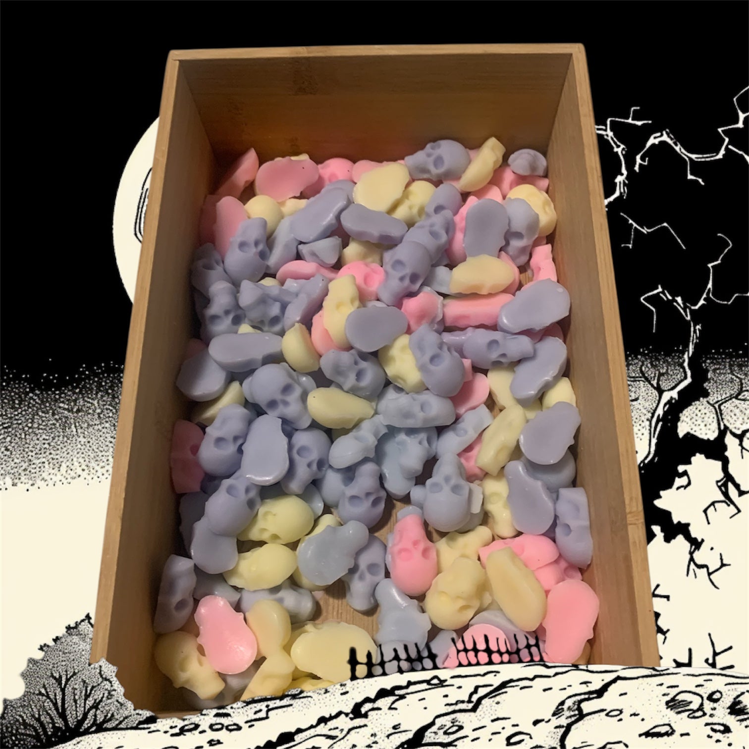 Bring spooky fun to your home with new Halloween Skulls unique wax melts. These glow-in-the-dark skulls come in a variety of bright colors and are infused with the irresistible scent of sour patch lollies. Perfect for your wax melt collection, they create a festive atmosphere that sold out quickly last year—don’t miss out this time! Add a playful and fragrant touch to your Halloween celebrations with these unique, eye-catching melts.